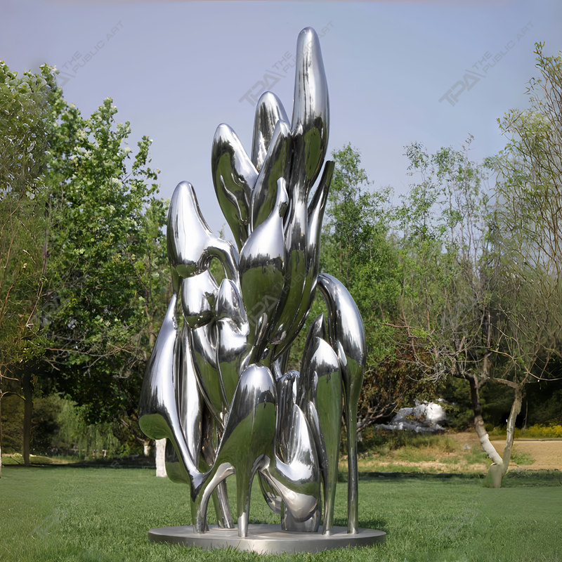 Cette œuvre d'art adopte un effet de polissage miroir, hautement réfléchissant et peut refléter l'environnement et la lumière, formant une interaction intéressante avec l'espace environnant. Sous différents angles et lumières, les effets de lumière et d'ombre sur la surface de la sculpture changeront constamment, produisant une expérience visuelle unique, qui peut donner aux gens une sensation lumineuse et intelligente, comme si les étoiles étaient disposées dans la Voie Lactée. Cet effet de polissage miroir peut améliorer le sens moderne et l'attrait artistique de la sculpture en acier inoxydable, la rendant plus accrocheuse.